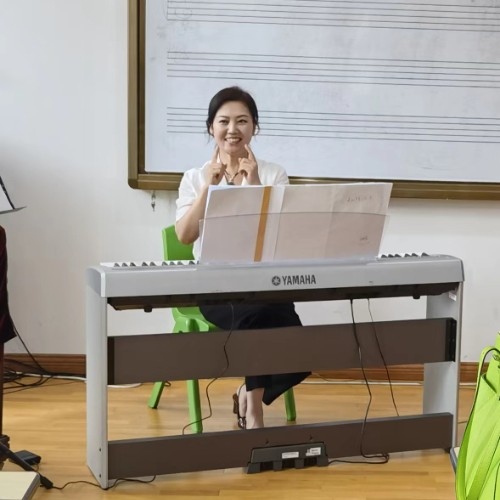 作為一名冀東民歌演唱家,王艷霞具有深厚的民歌演唱功底。她領銜的合唱團曾榮獲文化和旅游部主辦的第四屆全國非遺民歌大賽優秀演唱獎;她本人多次參加中央電視臺《民歌中國》《回聲嘹亮》《歡樂英雄》等節目錄制,演唱的《撿棉花》《草莓熟了》分別榮獲河北省首屆民歌大賽一等獎、第二屆民歌大賽一等獎、河北燕趙群星獎,并多次代表河北省參加省外各種文化交流活動。在此次公益活動中,她結合《我的祖國》《為愛干杯》等作品,充分利用自身的專業特長,深入淺出,循序漸進地為學員們詳細講解歌曲演唱過程中“通、實、圓、亮、純、松、活、柔”聲音標準,她的講解通俗易懂,舉例形象,示范精確,引人入勝,激發了學員們極大的學習熱情;在沙龍活動環節,她對每位學員的演唱進行逐一點評,對學員出現的呼吸、共鳴、腔體等問題進行現場糾正,并與學員們共同演唱歌曲《阿瓦爾古麗》,將沙龍活動推向高潮,引來陣陣掌聲。