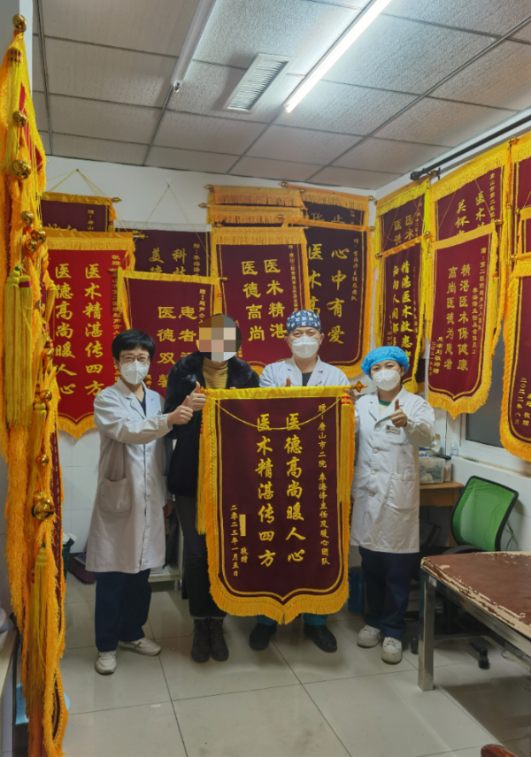 “醫德高尚暖人心,醫術精湛傳四方”,近日,一名微創手術患者為唐山市農工黨黨員、市第二醫院功檢科主任李海澤及其團隊送來了2023年新春的第一面錦旗,這已是李海澤團隊收到的第127面錦旗。