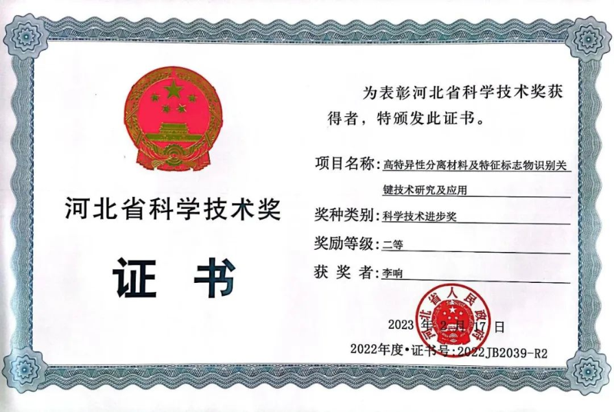 4月6日,河北省科學(xué)技術(shù)獎(jiǎng)勵(lì)大會(huì)在石家莊召開,會(huì)上宣讀了《河北省人民政府關(guān)于2022年度河北省科學(xué)技術(shù)獎(jiǎng)勵(lì)的決定》。農(nóng)工黨黨員、農(nóng)工黨秦皇島市生態(tài)環(huán)境支委會(huì)主委、市政協(xié)委員李響作為第二完成人,參與的科研項(xiàng)目“高特異性分離材料及特征標(biāo)志物識(shí)別關(guān)鍵技術(shù)研究及應(yīng)用”獲2022年度河北省科學(xué)技術(shù)進(jìn)步獎(jiǎng)二等獎(jiǎng)。