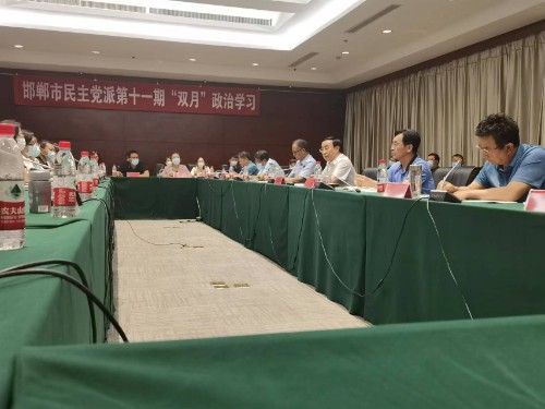 高洋以《中國共產(chǎn)黨百年來統(tǒng)一戰(zhàn)線工作的歷程和經(jīng)驗(yàn)》為題進(jìn)行授課,農(nóng)工黨邯鄲市委專職副主委申金燕領(lǐng)學(xué)《中國共產(chǎn)黨政治協(xié)商工作條例》,隨后各民主黨派成員代表交流發(fā)言。