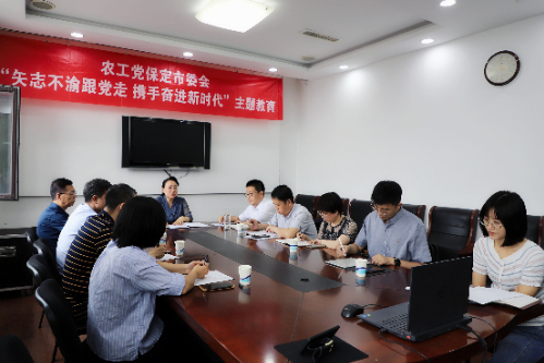 7月10日下午,農工黨保定市委召開“矢志不渝跟黨走 攜手奮進新時代”主題教育活動座談會暨理論學習中心組學習會議。保定市政府副市長、農工黨市委主委楊偉坤出席會議并講話。農工黨保定市委專職副主委趙濤主持會議,副主委劉風昌、鄭思海、趙寶輝,副秘書長楊森參加會議。
