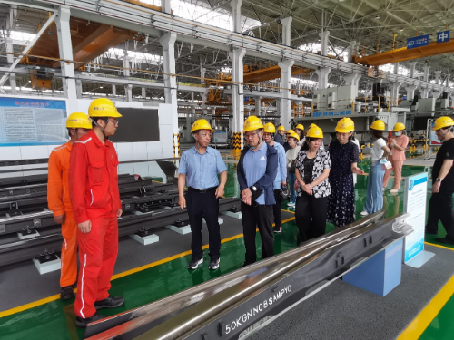 市政協副主席、農工黨市委主委郭擁軍,二級調研員陳麗茹,專職副主委兼秘書長陳麗娟,副主委王艷輝一行人深入中鐵山橋道岔車間和歷史文化長廊,感受企業先進的生產技術和紅色文化,詳細了解了中鐵山橋百年發展史、王盡美同志的生平事跡。
