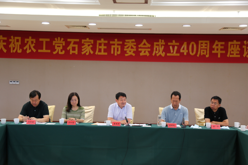 隨后,農(nóng)工黨石家莊市委會組織召開慶祝農(nóng)工黨石家莊市委會成立40周年座談會,市政協(xié)副主席、市委會主委崔建升出席會議并與參會代表進(jìn)行了溝通交流,駐會副主委程鵬起主持會議,副主委馬紅哲、郝軍參加會議,7名優(yōu)秀黨員代表結(jié)合自身實際講述了自覺繼承和發(fā)揚老一輩農(nóng)工黨員“愛國、革命、奉獻(xiàn)”的優(yōu)良傳統(tǒng)與農(nóng)工黨市委會一起共同成長的生動故事。