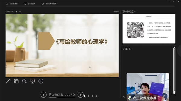 農(nóng)工黨保定同心書院副院長、市職業(yè)教育支委會主委、河北保定技師學院教務處副處長吳娜分享《寫給教師的心理學》。本書全面解讀了與教育相關的心理學,闡釋了心理學規(guī)律如何在課堂內智慧地運用,如何使教與學更有效,以及為什么這些對于教師的專業(yè)發(fā)展至關重要。書中通過大量實例介紹了孩子們是如何學習的,為什么他們會有各種行為問題和學習問題,幫助教師理解并采用不同的教學方法來促進不同學生的進步,幫助教師形成個人有效的教學風格。