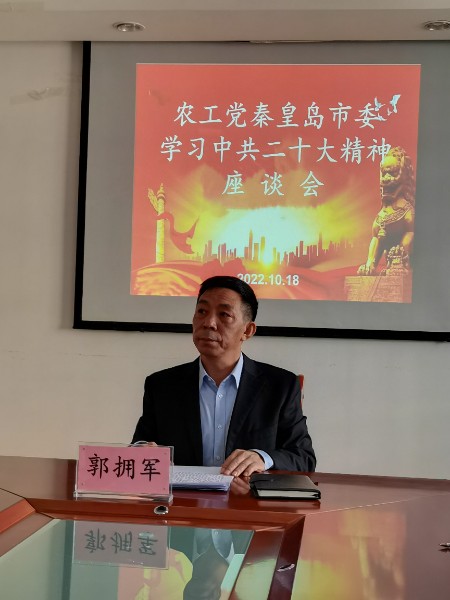 10月18日,農工黨秦皇島市委會在機關三樓會議室召開學習中共二十大精神座談會,市政協副主席、農工黨市委主委郭擁軍出席會議并講話,駐會副主委陳麗娟、機關干部參加會議。會上集體學習中共二十大精神,并圍繞學習黨的二十大精神和黨務工作進行交流發言。