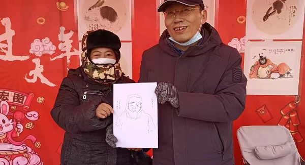 “小年”是整個春節慶?;顒拥拈_端,自“小年”起,春節的年味將越來越濃郁,節日的氛圍越來越熱烈。開平區支部連續多年在“小年”前后,組織黨員到基層社區開展春節慰問志愿服務活動。今年支部將活動地點選在唐山花海,以實際行動助力唐山花海“后園博時代”建設。活動現場,馬群、孫正鶴等黨員精選畫作布置春節微畫展供群眾欣賞,豐富節日文化生活,展現農工黨黨員同心奮進新征程、聚力建功新時代的精神風貌;義務為群眾創作肖像畫,用丹青傳韻送祝福,增添節日喜慶氣氛,活動得到現場群眾的熱烈歡迎。