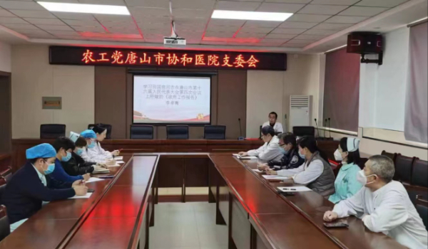 2月16日下午,農工黨唐山市協和醫院支委會組織黨員深入學習唐山市第十六屆人民代表大會第四次會議和政協唐山市第十三屆委員會第三次會議精神。農工黨唐山市委副主委、協和醫院支委會主委李翔宇主持學習并講話。