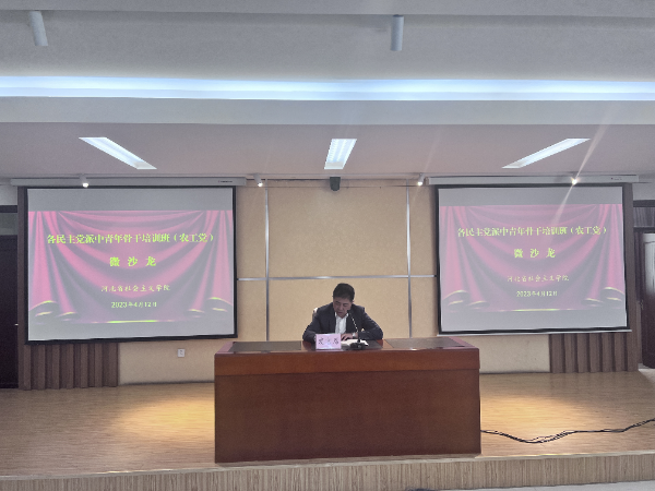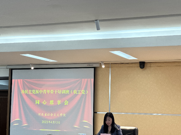 為深入學習習近平新時代中國特色社會主義思想,學習貫徹中共二十大精神,堅守合作初心,傳承優良傳統,深化政治交接,鞏固政治共識,4月10日—14日,各民主黨派中青年骨干培訓班(農工黨)在河北省社會主義學院舉辦。農工黨承德市委專職副主委谷雪芬,秘書長李向寶,組織部長霍巖,骨干黨員張承浩、王艷梅、馬麗麗,參加了為期一周的學習培訓。省委統戰部副部長、省社會主義學院黨組書記、第一副院長李文杰在開班式上致辭,農工黨河北省委專職副主委劉曉萌講話,農工黨河北省委組織部長李曉輝主持開班式。