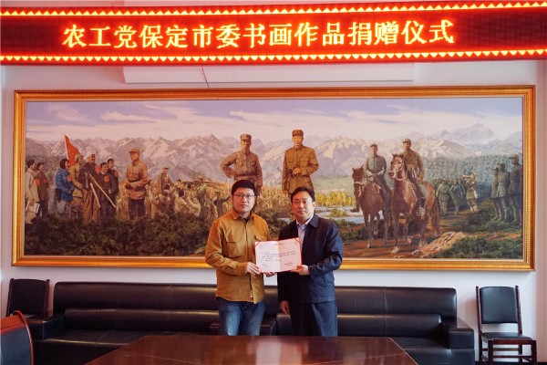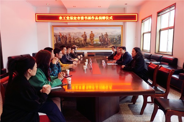 4月23日下午,農工黨保定市委赴阜平城南莊向晉察冀邊區革命紀念館捐贈書畫作品。農工黨保定市委專職副主委趙濤,農工黨保定書畫院院長楊剛、常務副院長兼秘書長傅偉參加活動。