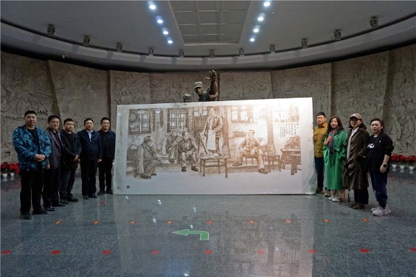 楊剛向大家介紹了《同心》的創作思路、構思過程,作品描繪了中共中央書記處書記毛澤東、朱德、劉少奇、周恩來和任弼時討論研究城南莊會議相關內容的場景。