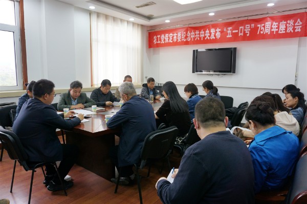 4月27日,農(nóng)工黨保定市委在黨派機關會議室召開紀念中共中央發(fā)布“五一口號”75周年座談會。農(nóng)工黨保定市委專職副主委趙濤主持會議并講話,副主委劉風昌、趙寶輝、金星參加會議。