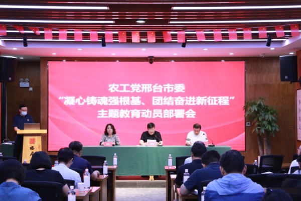 6月9日,農(nóng)工黨邢臺(tái)市委在邢臺(tái)格局商學(xué)院召開“凝心鑄魂強(qiáng)根基、團(tuán)結(jié)奮進(jìn)新征程”主題教育動(dòng)員部署會(huì)議。邢臺(tái)市政協(xié)副主席、農(nóng)工黨市委主委魏慶民出席會(huì)議并講話,中共邢臺(tái)市委統(tǒng)戰(zhàn)部三級(jí)調(diào)研員王志平應(yīng)邀出席,農(nóng)工黨市委二級(jí)調(diào)研員郭愛華主持會(huì)議,市委委員、各基層組織負(fù)責(zé)人和骨干黨員40余人參加會(huì)議。
