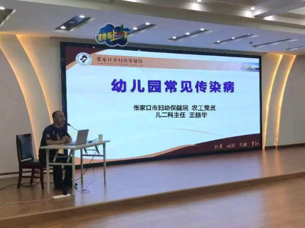 為進一步貫徹習近平總書記關于“讓廣大人民群眾享有公平可及的健康服務”指示精神,6月13日上午農工黨橋東區委醫藥衛生支部在張家口市幼兒園開展了“托幼機構培訓——健康教育進校園”活動。農工黨黨員,張家口市婦幼保健院兒二科主任王振華為張家口市幼兒園的孩子們和教職員工進行了“幼兒園常見傳染病”的健康講座。