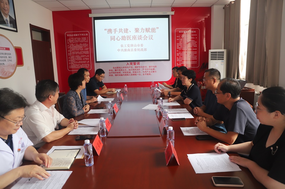 為深入開展“凝心鑄魂強根基、團結奮進新征程”主題教育,扎實推進“攜手共建、聚力賦能”活動,7月21日,農工黨唐山市委會專職副主委賈敬蘋、王志偉等一行6人赴灤南縣疾控中心開展“攜手共建、聚力賦能”同心助醫調研座談。會議由縣委常委、組織部長、統戰部長馬靈芝主持。