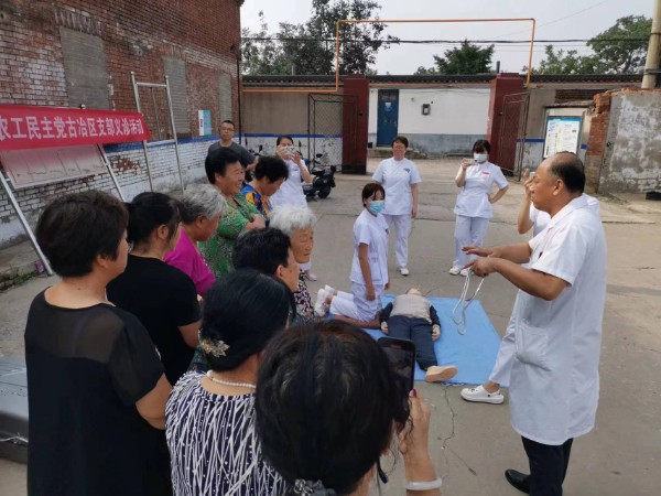 “雙手交疊,以髖關(guān)節(jié)為支點、挺直腰部,雙臂伸直,垂直向下按壓30次......”8月3日,在古冶區(qū)習(xí)家套鄉(xiāng)任家套村的黨群活動中心大院內(nèi),農(nóng)工黨黨員、唐山市第三醫(yī)院心內(nèi)科副主任唐瑞雙正在為當(dāng)?shù)卮迕裰v解心肺復(fù)蘇術(shù)的要領(lǐng),一旁的醫(yī)護人員借助“模擬人”配合唐主任的講解,逐步進行心肺復(fù)蘇搶救演示。