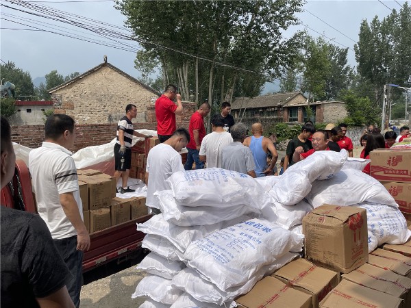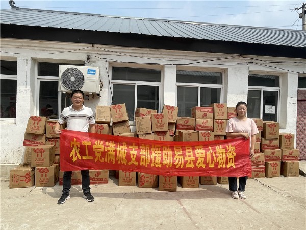 8月10日,農(nóng)工黨保定市滿城支部主任傅偉帶隊(duì)前往南城司鄉(xiāng)三義村、曹各莊村,與愛(ài)心企業(yè)家竺楊共同出資捐贈(zèng)150件米(4袋/件),100件面(5袋/件),150件油(4桶/件),55箱方便面,50箱礦泉水,總價(jià)值達(dá)62600元。