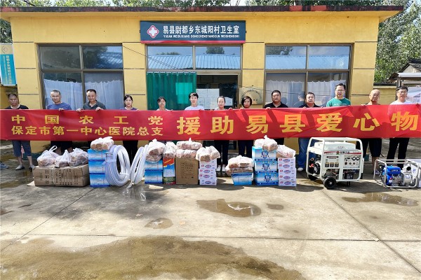 8月12日,在農工黨保定市委秘書長楊森的帶領下,市委委員、保定市第一中心醫院總院支委會主委張會弟,副主委滕海茂,東院支委會主委段亞輝,西院支委會主委白艷輝、副主委田麗君、曹永靖等人,前往易縣尉都鄉東城陽村捐贈10千瓦發電機1臺、水泵2臺、84消毒液10件、手動噴霧器4個、電動噴霧器4個、食品110件等價值9000多元的物資。天災無情,人間有愛;一方有難,八方支援!讓我們齊心協力共建家園。