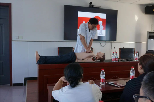 保定市第一中心醫院急診科副主任醫師梁青為大家講解心肺復蘇急救知識和操作要點并進行操作演示。
