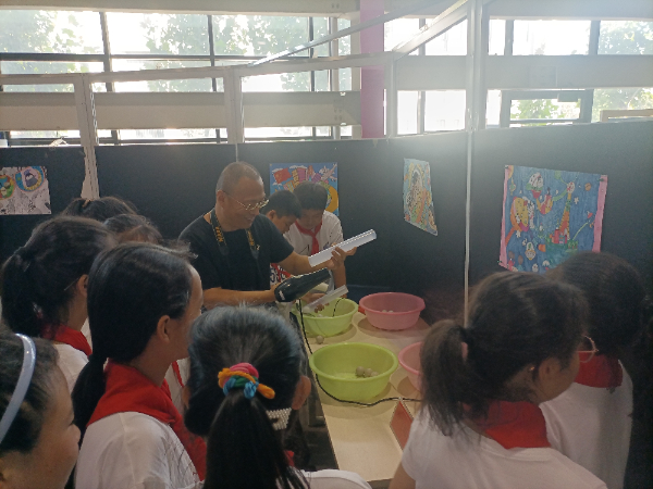9月20日上午,在開(kāi)平區(qū)2023年全國(guó)科普日青少年科技體驗(yàn)活動(dòng)現(xiàn)場(chǎng),農(nóng)工黨唐山市開(kāi)平區(qū)支部主任馬群正在為參加體驗(yàn)的孩子們?cè)敿?xì)講解空氣炮的產(chǎn)生原理。