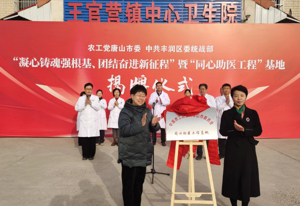 12月8日上午,農工黨唐山市委會在豐潤區王官營衛生院舉辦“凝心鑄魂強根基、團結奮進新征程”主題教育進基層暨“同心助醫工程”基地揭牌儀式。農工黨唐山市委會副主委賈敬蘋、李翔宇,豐潤區政協副主席李建華,區委統戰部常務副部長史穎軒,區衛健局、王官營鎮主要領導及王官營衛生院中層干部等參加活動。賈敬蘋、李建華共同為“同心助醫工程”基地揭牌。