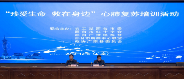 12月5日,農工黨邢臺市委會聯合邢臺市紅十字會、邢臺廣播電視臺、邢臺市胸痛中心聯盟、廣宗縣政協到廣宗縣第一中學舉辦“珍愛生命 救在身邊”心肺復蘇培訓活動。邢臺市政協副主席、農工黨邢臺市委會主委、市人民醫院副院長魏慶民,農工黨邢臺市委會二級調研員郭愛華出席培訓。