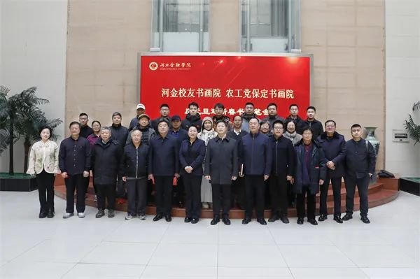 癸卯冬月,瑞雪呈祥。12月20日,河金校友書畫院、農(nóng)工黨保定書畫院“慶元旦迎新春書畫筆會”活動在河北金融學(xué)院圖書館二樓舉行。河北金融學(xué)院黨委書記楊兆廷,校長、農(nóng)工黨保定市委會主委楊偉坤,黨委副書記姚維剛,黨委常委、紀(jì)委書記聶會文,河金校友書畫院顧問、原紀(jì)委書記張紹紅,農(nóng)工黨保定市委會專職副主委趙濤,河金校友書畫院院長劉長海出席活動。活動由人文藝術(shù)教育教學(xué)部黨總支書記田鈺瑩主持。