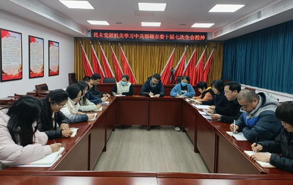 12月27日,農工黨邯鄲市委會全體機關工作人員參加民主黨派機關會議,集中學習中共邯鄲市委十屆七次全會、中共邯鄲市委黨外人士座談會等會議精神。
