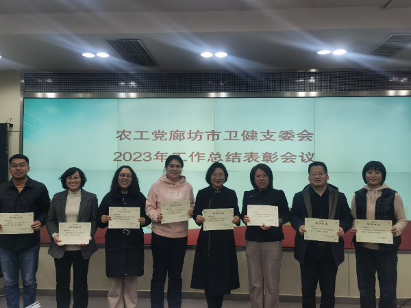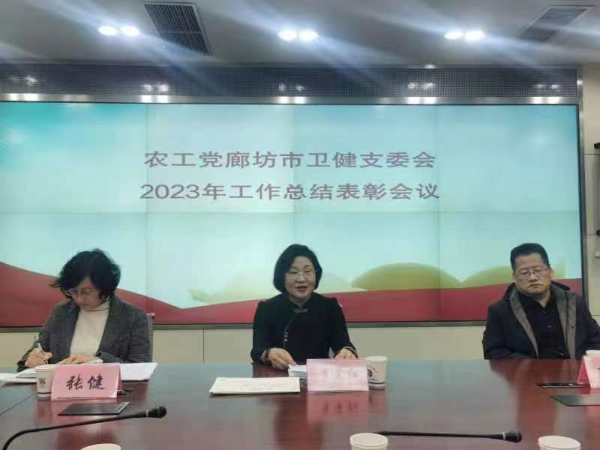 為深入貫徹習近平總書記考察河北講話精神,落實中央農工黨十七屆二中全會精神,總結2023年工作,查擺不足,安排部署2024年整體工作,2024年1月25日下午在市衛健委4樓會議室,農工黨廊坊市衛健支委會召開2023年度工作總結表彰暨2024年工作部署會議。市委會副主委李素紅、市委會委員王斌應邀出席會議,支委主委張健、副主委呂國棟、高柏茹以及7名黨員參加會議。