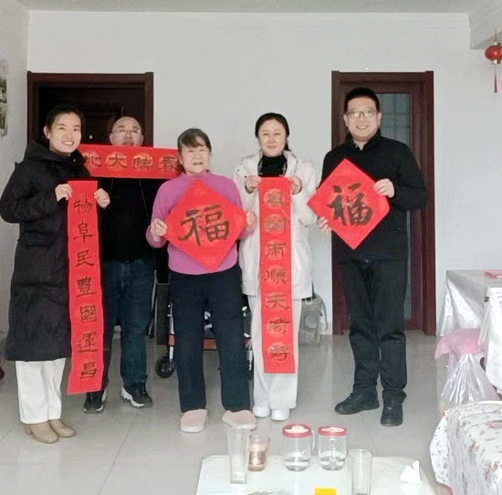 最是尋常暖人心,慰問傳情送祝福。農工黨保定市委會專職副主委趙濤將滿載的“福”字和喜慶的春聯送上,與趙慧敏親切交談,詳細詢問老人的身體狀況。并叮囑競秀支委會要對老黨員做到思想上關心、生活上照顧、精神上關懷,讓老黨員切實感受到農工黨黨組織的溫暖。