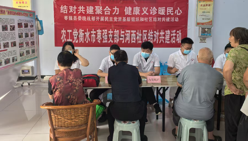 8月8日上午,農工黨衡水市棗強支部與河西社區聯合開展結對共建活動,為社區居民送上貼心的健康服務,活動惠及百余人。