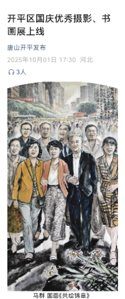 金秋迎華誕,藝韻頌祖國。10月1日,“迎國慶優(yōu)秀攝影、書畫作品線上展”在“唐山開平發(fā)布”正式上線展出。農(nóng)工黨唐山市開平區(qū)支委會精心組織黨員創(chuàng)作書畫作品參加活動,為此次線上展注入了獨特的黨派風(fēng)采。