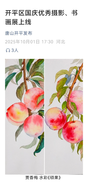 展覽中,多位農(nóng)工黨黨員的佳作精彩亮相。開平區(qū)支委會主委馬群的國畫《共繪錦章》,以筆墨寄情,勾勒時代發(fā)展的壯闊圖景;黨員張紅武的國畫《好山河》,用蒼勁筆觸定格祖國山河的雄奇壯麗;黨員賈香梅的水彩畫《碩果》,以斑斕色彩描繪生活的豐碩與美好。