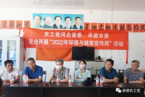 2022年6月15日,農工黨省委聯合農工黨承德市委赴隆化縣韓家店鄉西底溝村和廠溝門村開展2022年“環境與健康宣傳周”活動。農工黨省委辦公室主任王建華、中共承德市委統戰部副部長董鵬普、農工黨承德市委專職副主委谷雪芬、農工黨承德市委秘書長李向寶及骨干黨員參加活動。