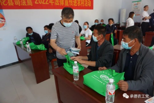 活動向西底溝村和廠溝門村村民發放環保及法律宣傳資料200余份,來自農工黨承德市第九支部的律師魏連國現場開辦法律咨詢小講堂,為當地群眾答疑解惑、普法講法、以案釋法。
