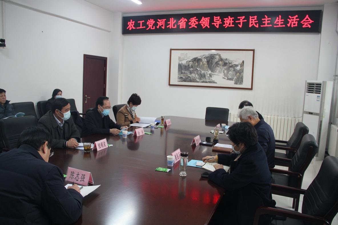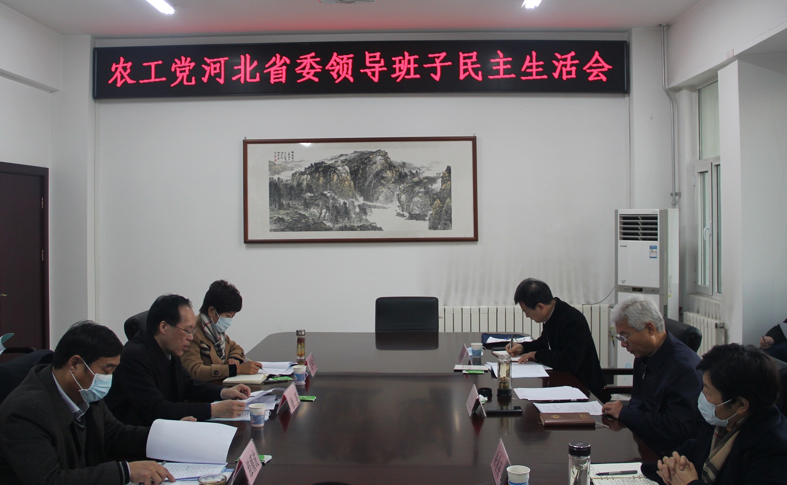 2021年12月31日,中國農工民主黨河北省第八屆委員會2021年度領導班子民主生活會在石家莊召開。會議由省政協副主席、農工黨省委主委王寶山主持,副主委徐英、孟祥紅、經順波參加會議。中共省委統戰部副部長、省政府僑務辦公室主任、一級巡視員栗慧英,省紀委監委駐省委統戰部紀檢監察組組長梁立新、省紀委監委駐省委統戰部紀檢監察組副組長張新芳、中共省委統戰部黨派處一級主任科員李帥出席會議。農工黨省監督委員會部分委員列席會議。
