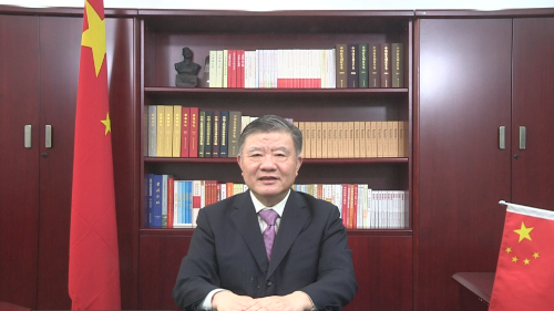 全國人大常委會副委員長、農工黨中央主席陳竺代表農工黨中央以視頻方式致賀詞