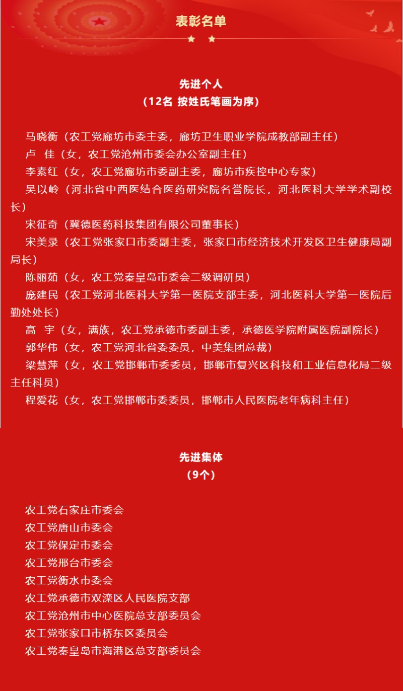 喜報!河北省12名黨員、9個先進集體獲得農工黨中央表彰