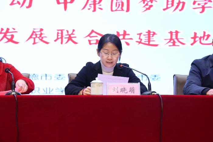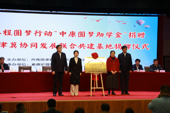 2023年11月16日,農工黨京津冀協同發展聯合共建基地揭牌儀式暨“中康圓夢助學金”捐贈活動在承德護理職業學院舉行。農工黨北京市委會專職副主委江欣、農工黨河北省委會專職副主委兼秘書長劉曉萌、中共承德市委副書記蔣文冬,承德市政協副主席、農工黨市委會主委郭靖濤出席活動并為“京津冀協同發展聯合共建基地”揭牌。農工黨北京市委會社會服務委員會主任、北京中康時代醫院投資集團董事長唐細忠,承德護理職業學院黨委書記高中衛出席活動。