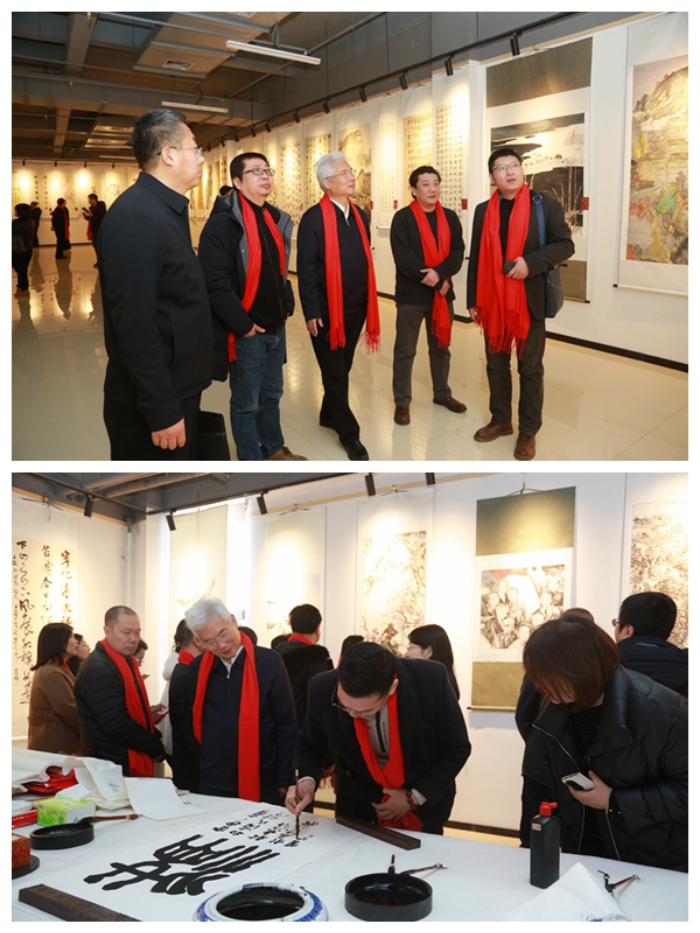 開幕式后,王寶山和書畫家代表參觀了書畫作品展,出席活動的書畫家現場進行了創作和交流、現場寫春聯和福字。