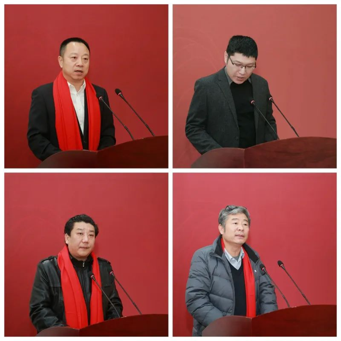 開幕式上,迎新春書畫作品展組委會主任、冀德美術館館長宋征奇,農工黨中央書畫院常務理事、農工黨保定書畫院院長楊剛,中國書法家協會會員、農工黨中央書畫院理事、河北省書法家協會教育委員會委員、大學書法教授王海博,中國美術家協會會員、農工黨中央書畫院理事、河北傳媒學院教授張江分別致辭。